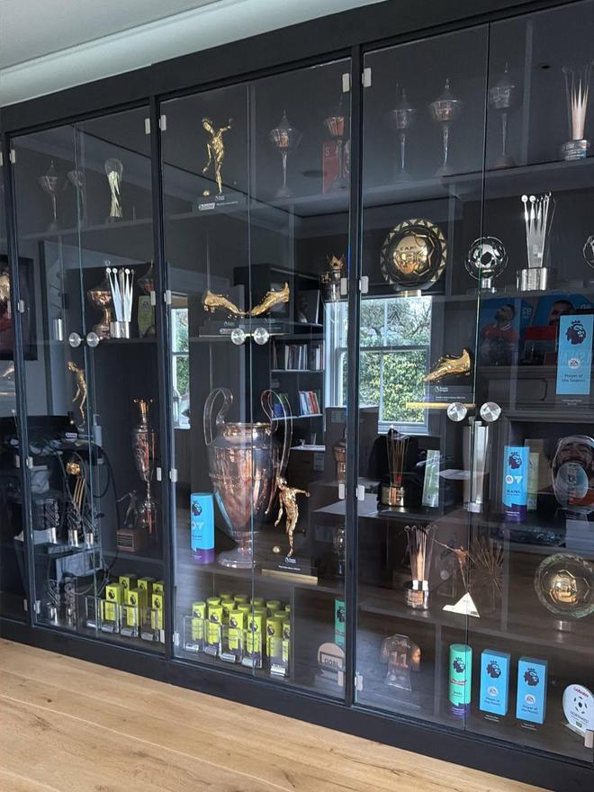 凱爾凱茲在社交媒體上曬出了自己的生活照,其中還包括一張薩拉赫家里的獎杯柜,可以看到,上面堆滿了各種獎杯。